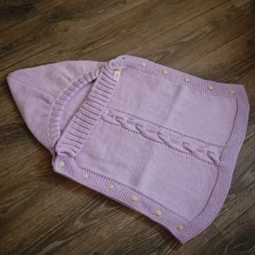 Lovely easy knit sleeping bag is the ideal gift for a baby born in the cooler months. An adorable hooded sleeping bag made in a luxurious cable stitch makes this a must have pattern for baby! What a fun and one of a kind gift this would be. The hooded sleeping bag is better than a tight cocoon that can be difficult to squeeze the baby into. It has buttons on both sides which allows for easy placement in and/or out. The edge of the sleeping bag, just below the chin, features a rolled edge look that is simple but clean looking. The hood features a ribbed edging to give it a cozy look around the babies face. This sleeping bag is made as one piece and the pattern Newborn – 12 months.